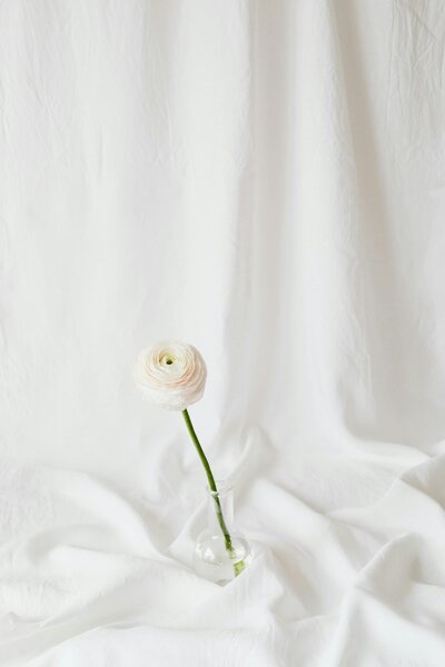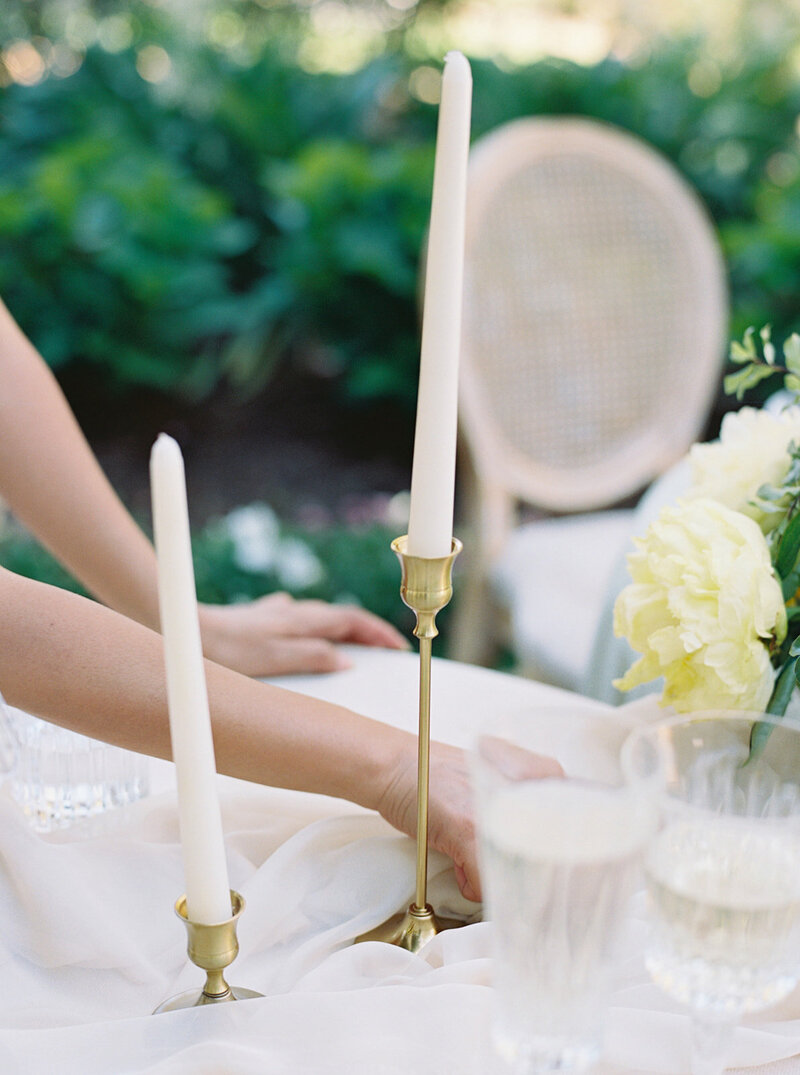 White silk and single white florals to a table setting can add the delicate elegant look.